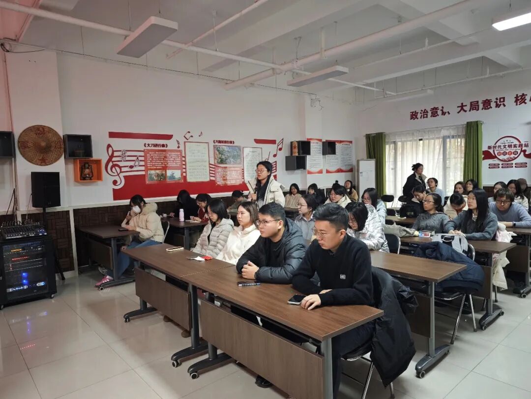 观摩结束后,师生来到社区新时代文明实践站,聆听祁春华书记关于绿地花都苑社区日常运行与特色项目的系统介绍。