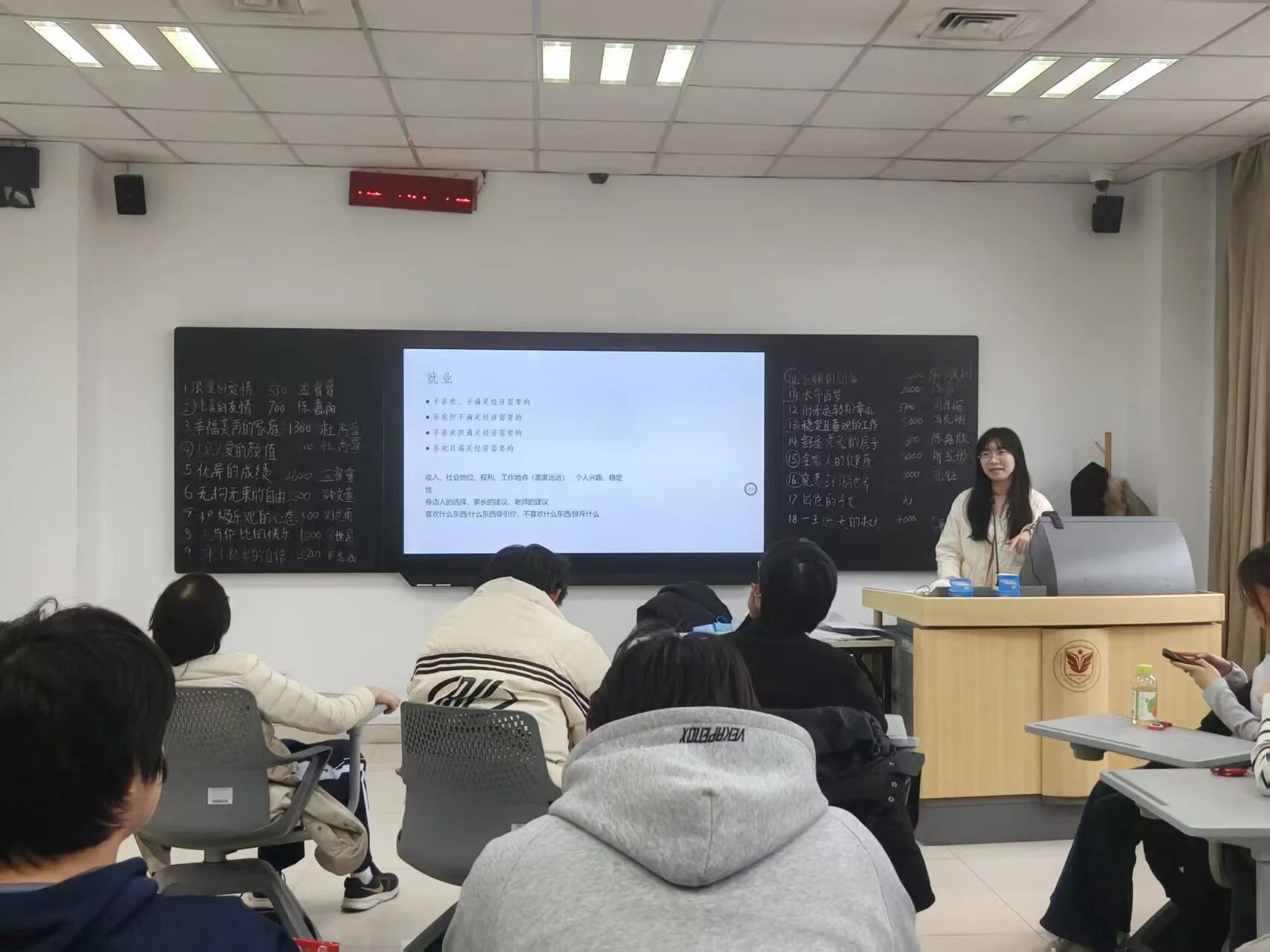 “学姐暖心对话”环节将活动推向了温馨的高潮。主持人率先为大家分发了巧克力,这象征着知识与关怀的分享。社工学姐王席庆一、李若诗、李瑞敏依次登台,围绕“专业学习与时间管理”“从课堂到实务”“社工专业成长路径”等主题,结合自身经历进行了真诚的分享,为新生提供了宝贵的“过来人”视角和实用建议。随后,在互动环节中,新生们积极提问,围绕“实习机会获取”“专业认同建立”“课业压力调节”等话题与学姐们展开了深入交流。有同学感慨道:“学姐的分享让我明白,社工不仅是一份职业,更是一种生活方式。”现场气氛温馨融洽,既实现了智慧的传递,也产生了情感的共鸣。