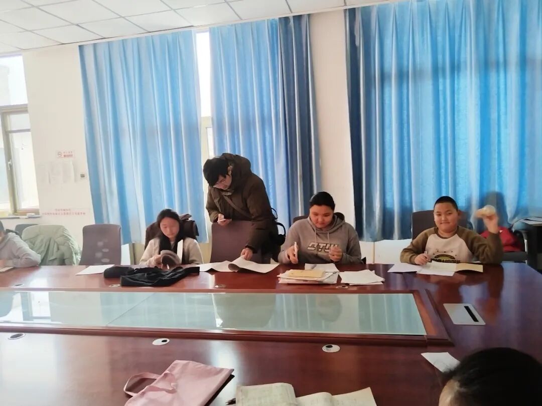 分享结束后,孩子们开始自主写作业。社工们留意着每个孩子的状况,随时为需要帮助的孩子进行辅导。一个孩子被数学题难倒,社工便引导他一步步拆解题意,寻找思路。还有一个孩子在写作文时忘记了事件的具体日期,迟迟无法下笔,社工俯身轻声说:“忘记了是哪天也没关系,我们可以多写写那天和爸爸抓娃娃的场景、心情和感受”。孩子们在书写中也逐渐敞开心扉,和社工聊起诸如“物理好难”“成绩起伏”等学业上的小烦恼,社工则以自身经历和实用建议给予回应与支持。